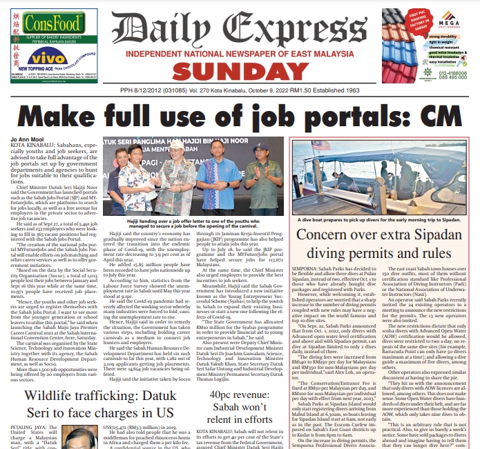 The Daily Express Sabah Borneo Malaysia Award-winning team of journalists presents Double Six. It was founded by the late Tan Sri Yeh Pao Tzu and the first issue hit the streets on March 1 1963. I would say Daily Express is the second best online Sabah newspaper in English.